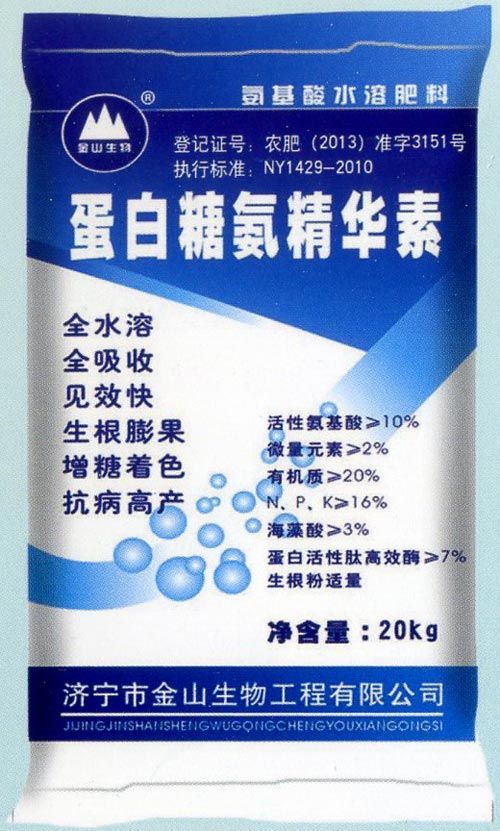 產品特點,本品主要針對經濟作物的需肥規律,采用國內先進的科研成果,以18種氨基酸為基礎,再配2O%的有機質,生化黃腐酸,16%的NPK,多種鋅鐵鎂硼鈣中微量元素,及活性肽、蛋白質、活性酶、生長素及六類生物菌,科學復配而成。配方合理營養全面,速溶。即可補充作物生長所需要的各種營養元素各種活性因子又能促進作物健壯成長,各種微生物的作用又能產生抗生素,生長素使作物抗病性強.生長快,大量有機質使作物根系形成良好的微生態系統,改善土壤理化性質,破除土壤板結提高土壤的保水、保肥性。增強根的吸收能力提高其他肥料的利用率,提高產量改善品質,增加效益。